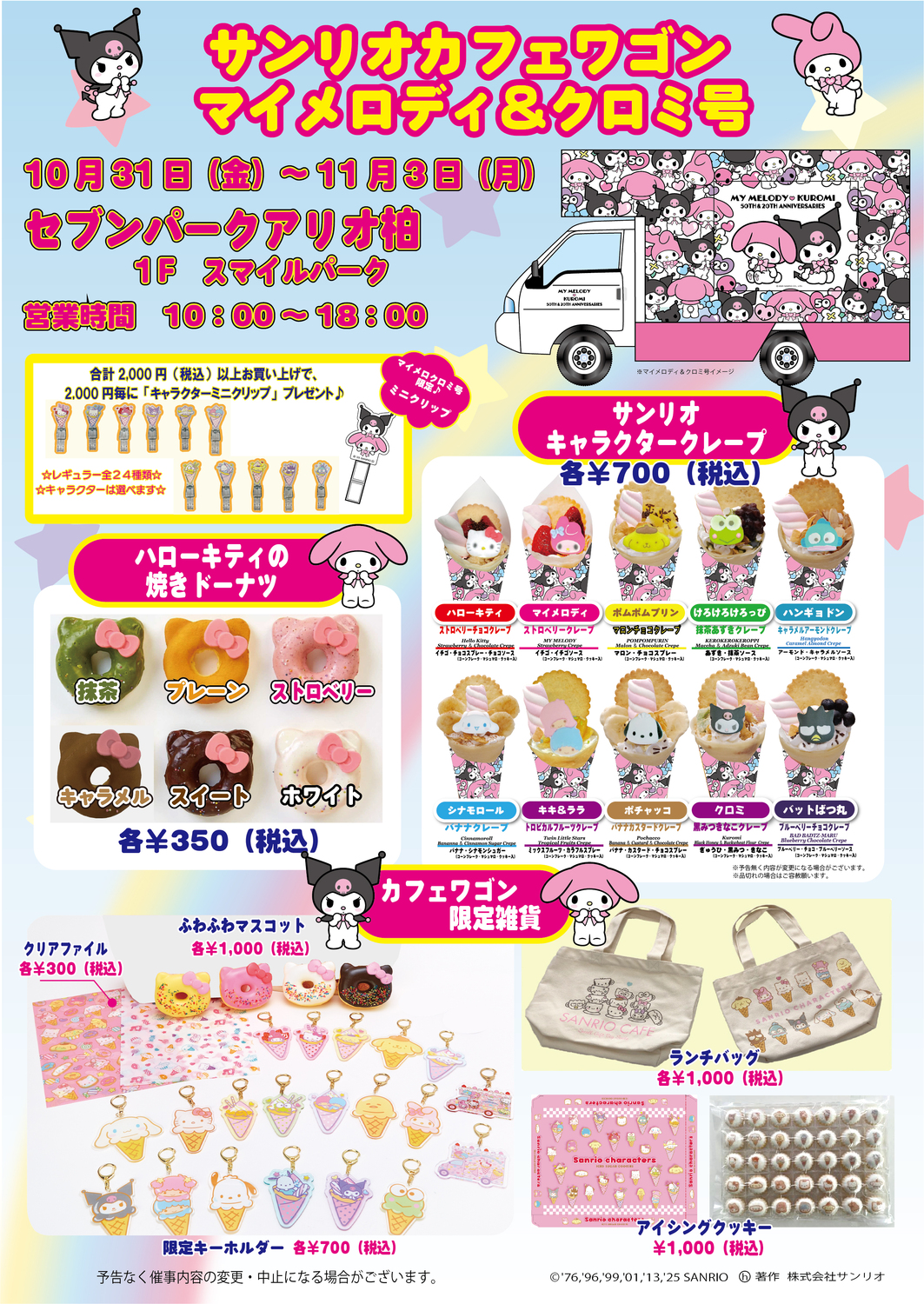 サンリオカフェワゴン「マイメロディ&クロミ アニバーサリー号」がセブンパーク アリオ柏に再登場します♪