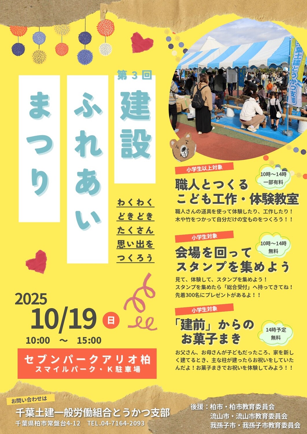 「お知らせ」から「建設ふれあいまつり開催のお知らせ♪」を見てね!