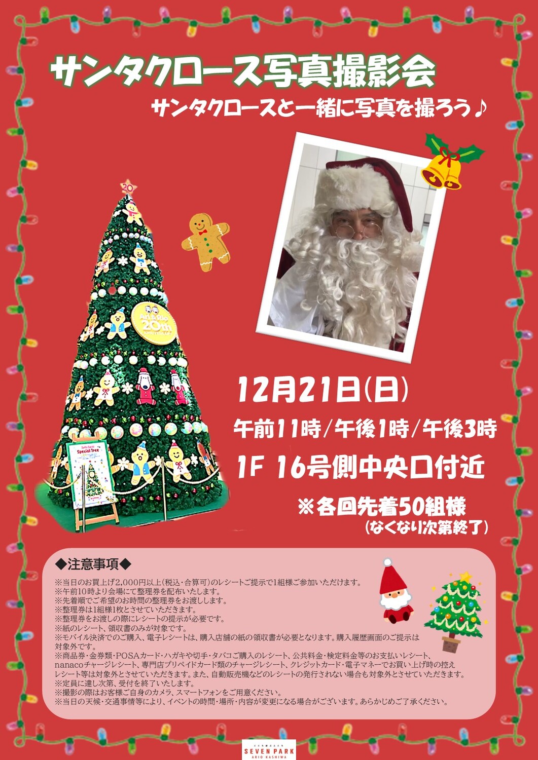セブンパーク アリオ柏にサンタクロースがやってきます!