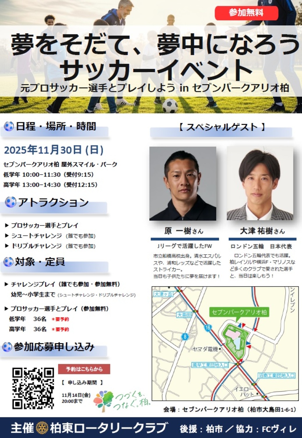 主催:柏東ロータリークラブ 後援:柏市 / 協力:FCヴィレ
