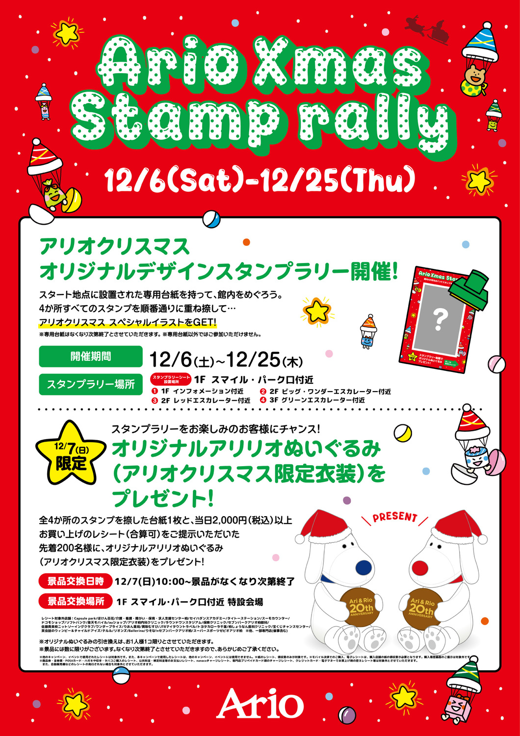 アリオクリスマス オリジナルデザイン スタンプラリー開催!