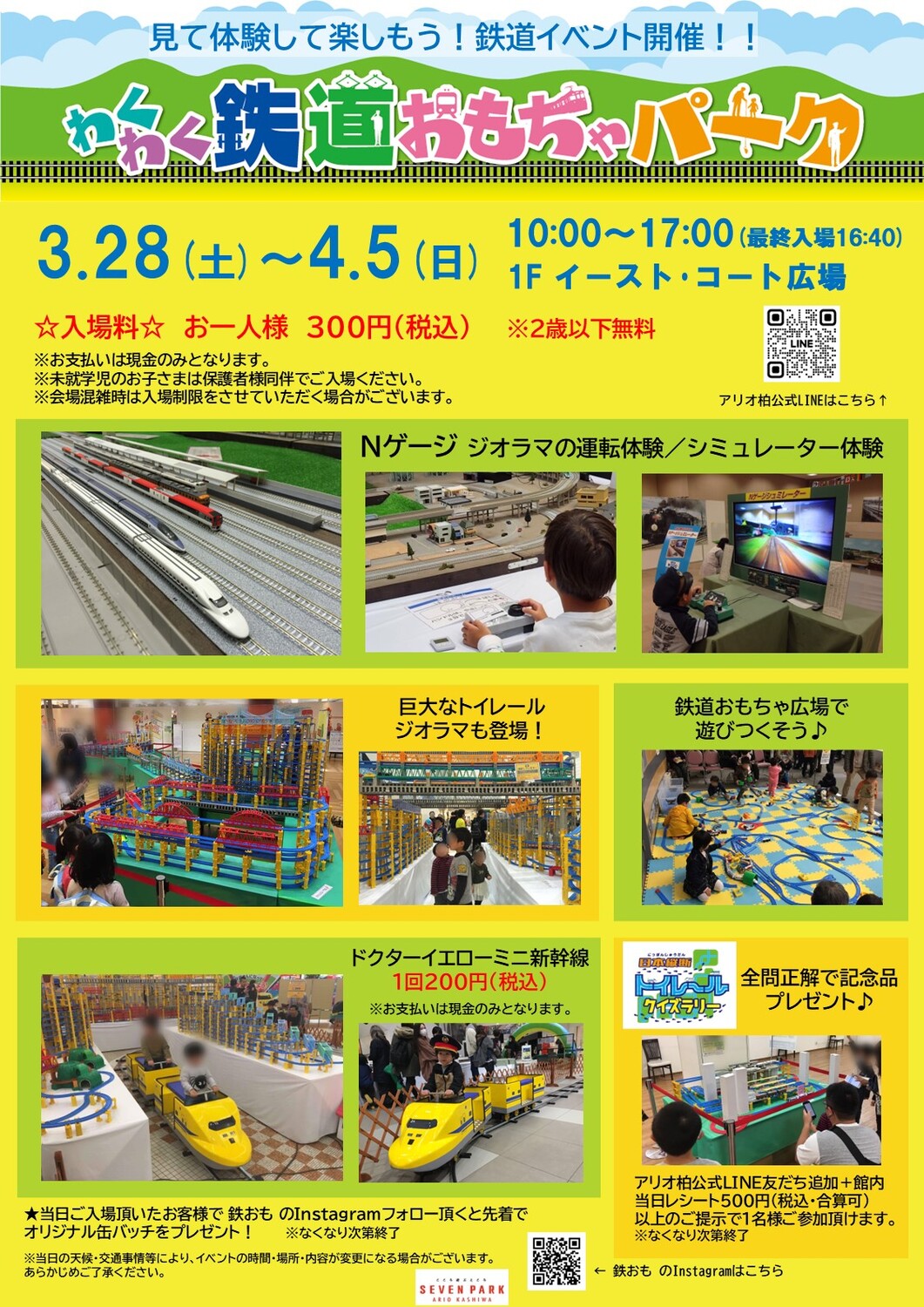 《参加条件》 セブンパークアリオ柏公式LINE友だち追加+館内当日レシート500円(税込・合算可)以上のご提示で1名様ご参加頂けます。