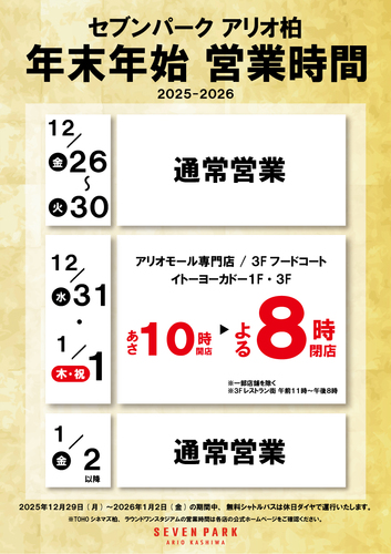 いつもセブンパーク アリオ柏をご利用いただき誠にありがとうございます。
