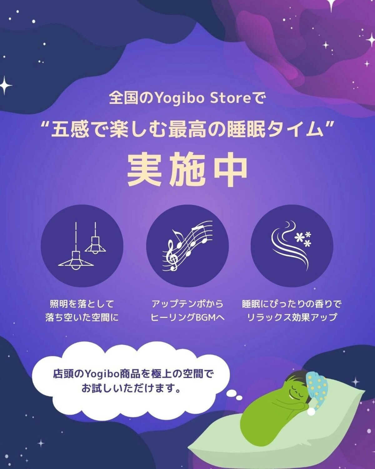 Yogiboでは期間限定で、店内の一部を使った『睡眠体験』を開催中です。