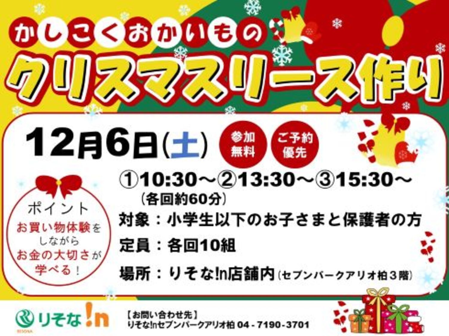かしこくおかいもの クリスマスリース作り