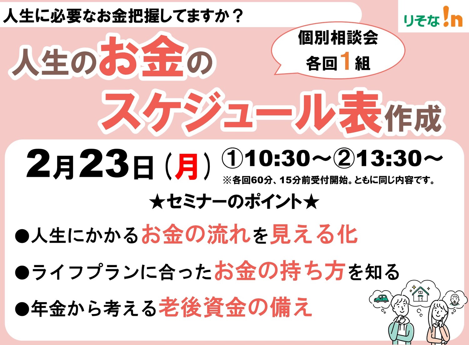 2/23(祝) 人生のお金のスケジュール表作成