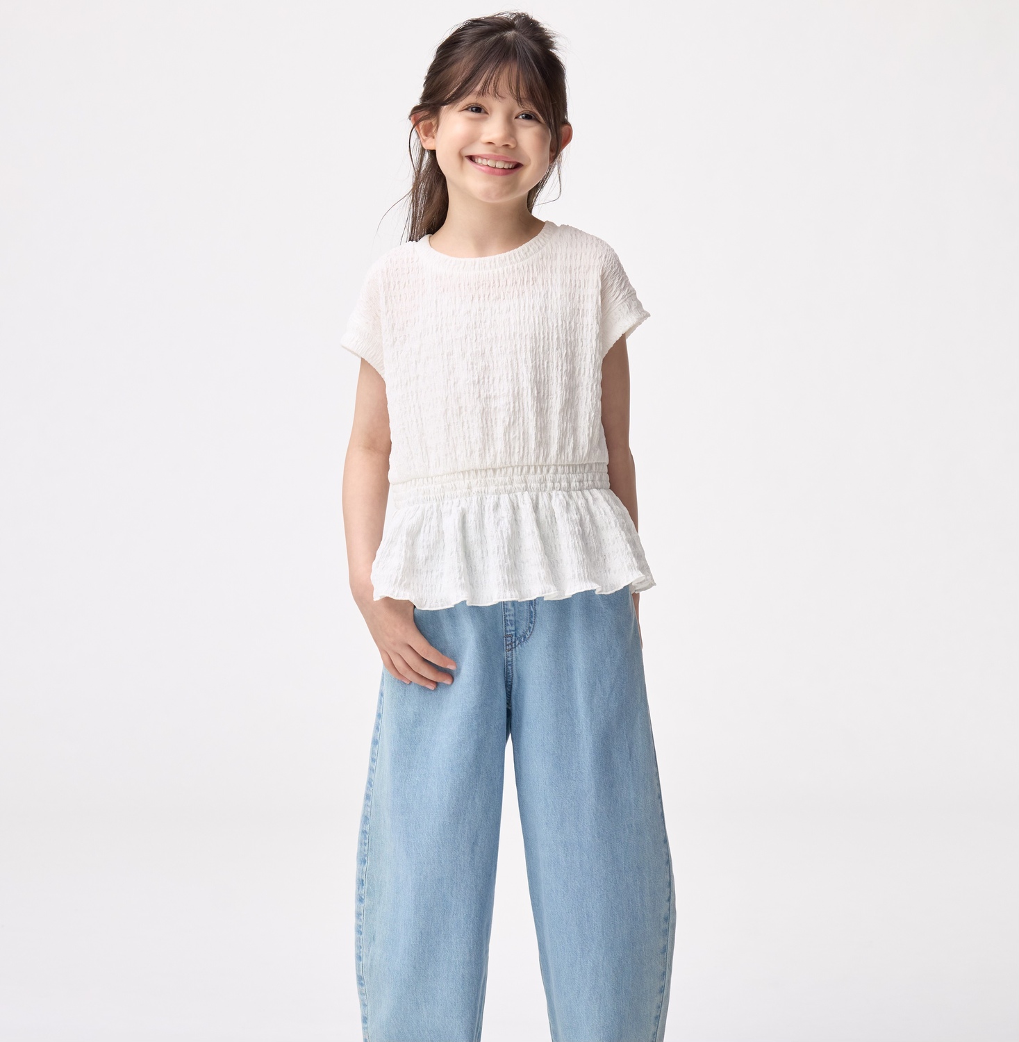 GIRLSライトデニムバレルレッグジーンズ