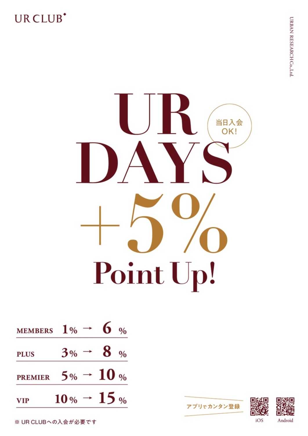 「UR DAYS +5%ポイントアップ 」開催のお知らせです‼️