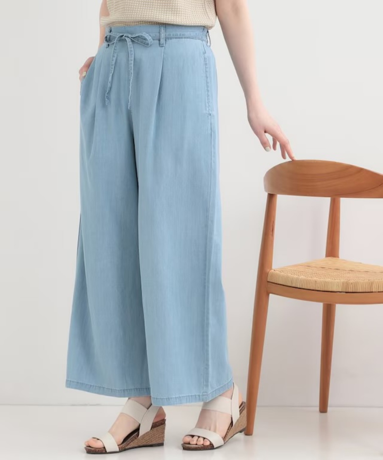 ウエストリボンがポイント デニムワイドイージーパンツ